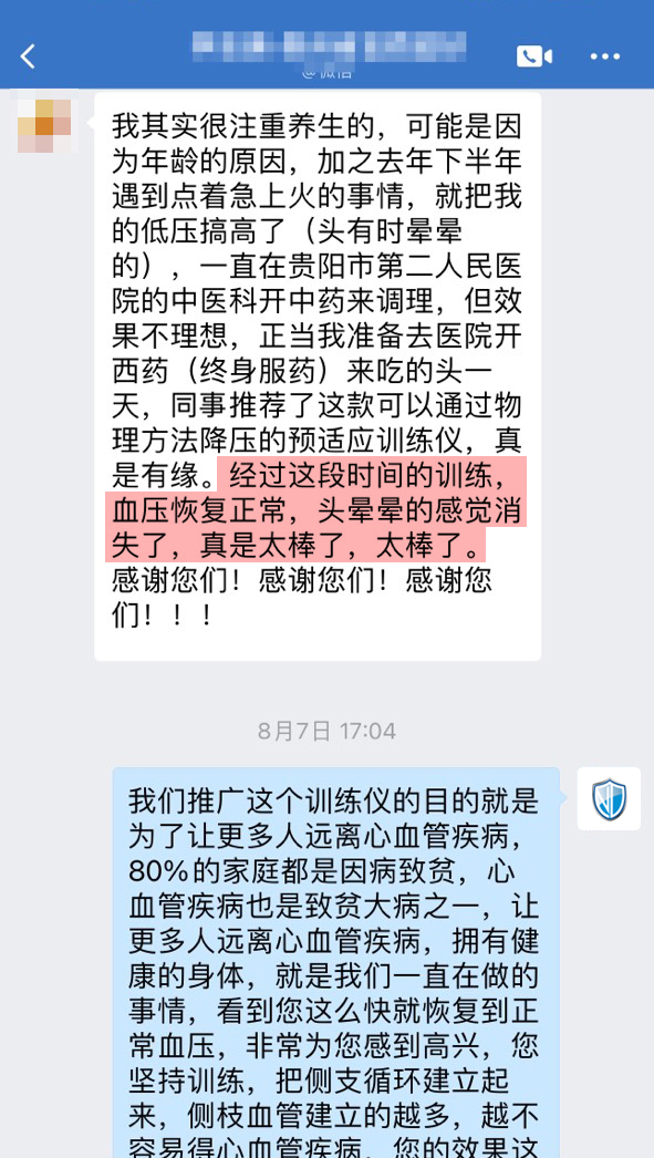 血壓恢復正常,頭暈的感覺消失了”